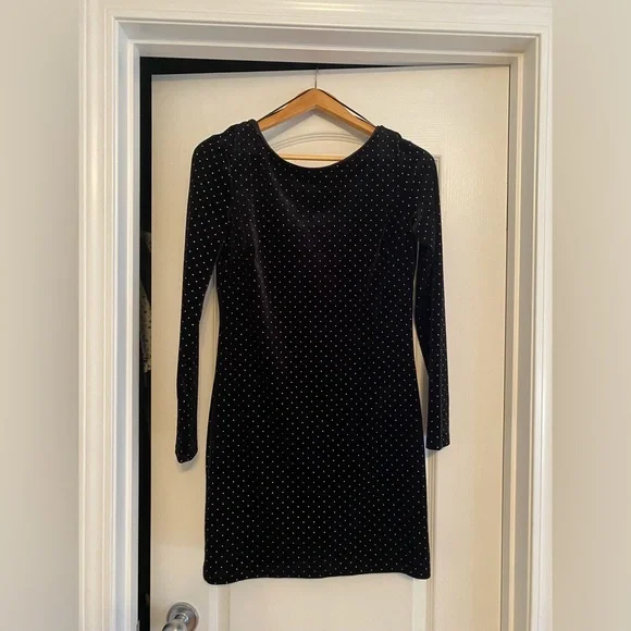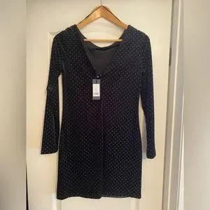 Dynamite Black Velvet Mini dress with silver studs. Size small. Never worn, tags still attached. Really cute dress, just doesn’t quite fit!