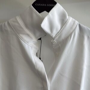 This elegant white top from Dynamite features a chic cropped design with long sleeves and a notched collar. Its crisp and clean look makes it a versatile piece, perfect for adding a modern touch to any outfit.