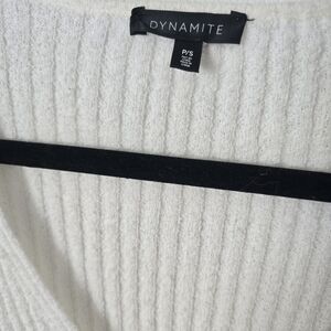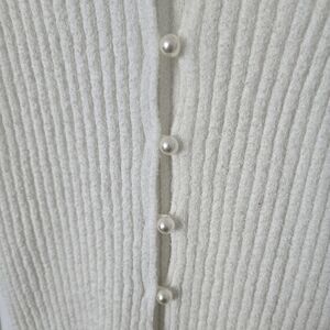Dynamite White Ribbed Pearl Button-Up Cardigan