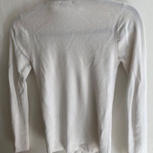Ribbed white turtleneck from Dynamite. Turtleneck has singular fold-over. Size S, fits XS, really stretchy torso.