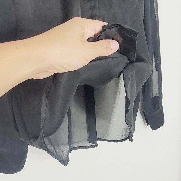 Dynamite Women's Black Sheer Pocket Long Sleeve Collared Button Down Shirt Size M