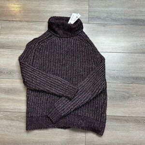 Dynamite Womens Long Sleeves Turtleneck Stitch Sweater Purple Cotton Size Small