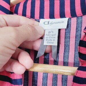 Dynamite Women's Pink & Black Striped Sleeveless Button Front Midi Dress Size S