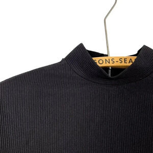 This is a textured crepe long-sleeve top from Dynamite, featuring a chic mock neck and a full zip closure at the back. In excellent condition, this top is perfect for work or casual wear, offering a polished, modern look with a sleek silhouette.