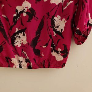 V-Neck, 3/4 sleeves with elastic waistband and sleeves elastic, non-stretch fabric.