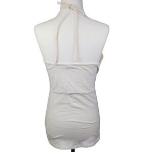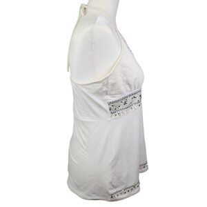 Dynamite Y2K Cream Empire Waist Halter Top Sequin Gold Embroidered Details Large