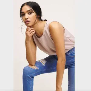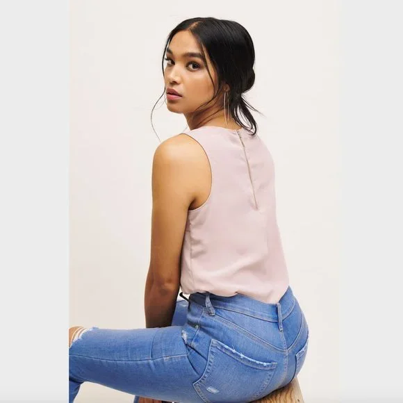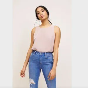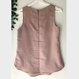 A wardrobe staple, the semi-fitted silhouette and sleek design make this shell tank extremely versatile and timeless. GUC with minor general wear.