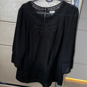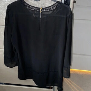 🖤Elegant chic style dressy casual see through detailed crotchet design blouse great preloved condition approx measurements and condition photographed