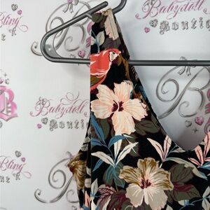 Dynamite dress flowers bird parrot tropical green black Multicolor Floral Dress