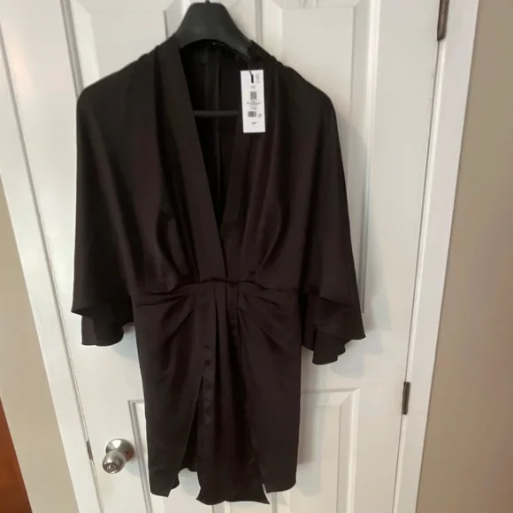 Dynamite deep Vneck wrap mini dress jet black size Small , body and lining 100% polyester