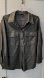Gorgeous dark olive color, snaps up the front. extremely soft faux leather, and a velvety grey inside. A perfect layer 🌱