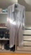 Light olive green jacket with side pockets and removable belt, which has silver hardware and the end. Front lapels for a waterfall effect. Cuffed with tortoise buttons. Long slit in the back for comfort wear; small hole at the top of the slit (as shown in the picture). It’s looks grey in the pictures and video but it’s a nice olive green. Other than the described hole, it’s its good condition. Putting it’s as fair condition due to the damage.