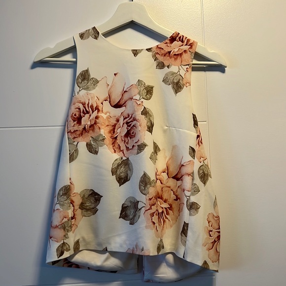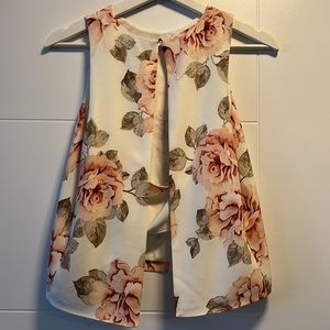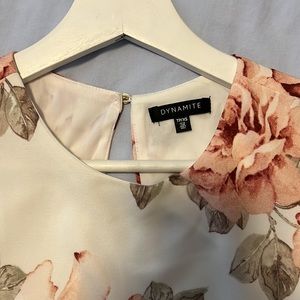 Dynamite top Size xs, has open back with band across white with pink flowers Gently used