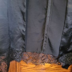 long vest style top, lace trim at the bottom and under the arms. worn once. nice satiny-style material. has a sash to tie it. size medium