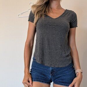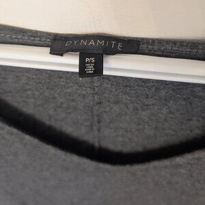 Dynamite, v-neck, short sleeve, tee, dark grey, loose fit, size small
