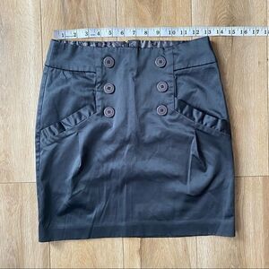Picturing a black polyester highwaisted military button skirt by Dynamite in a size 3. See aprox measurements for accurate sizing.