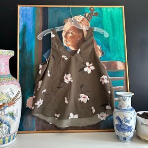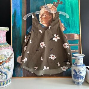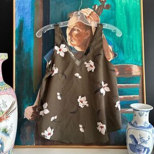 Chic olive blouse with floral print. Sleeveless design. Perfect for casual outings. Pit to pit 19” Length 23”