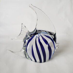 Vintage Dynasty Gallery Glass Paperweights Angel Fish White Blue Stripes