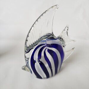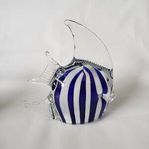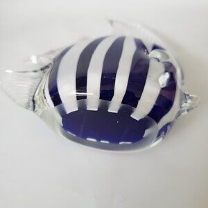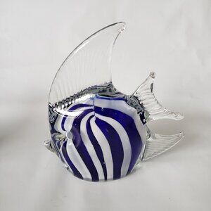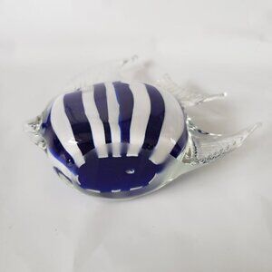 Vintage Dynasty Gallery Glass Paperweights Angel Fish White Blue Stripes