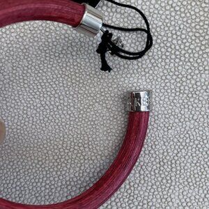 -Pink dyed bamboo with metal tube and end details