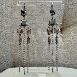 This fabulous earrings have large pillow cut faceted glass links in smokey grey, sand, and milky griege which looks almost metallic. The glass is super reflective and looks just gorgeous in person! Leverback fastening for super comfort and security. Matching Ladonia bracelet also available in my closet (at time of listing).
