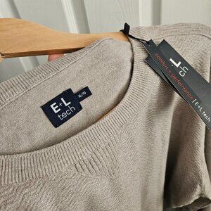 E + L Tech Men's XL Beige Light Grey Crew Neck Light Sweater - NEW with tags