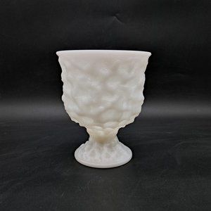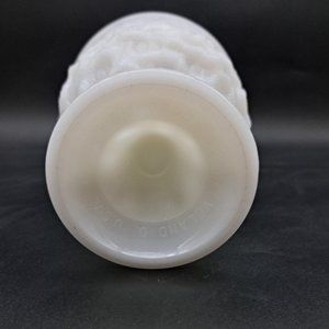 An E O Brody milk glass vase made in the USA in the 1960s or 70s. The exterior looks like solidified lava. The This piece can be used as anything from an indoor planter to a candy bowl to an oversize pen holder.
