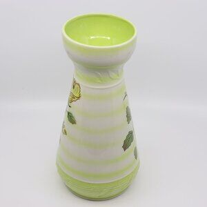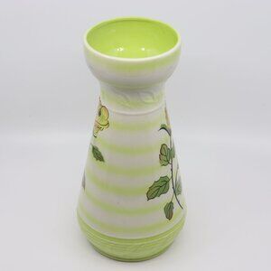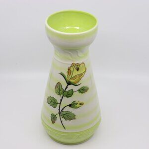 E Radford, England, hand painted, Woods, Vase, roses, lime green, stripes, embossed, mid-century, vintage, bouquet vase, stripes, leaves, rose buds