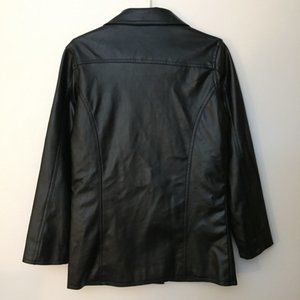 Faux leather black single buttoned blazer jacket. Very classic and slim fit, with two front pockets.