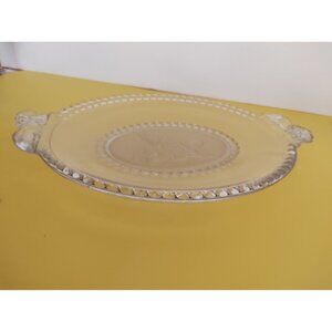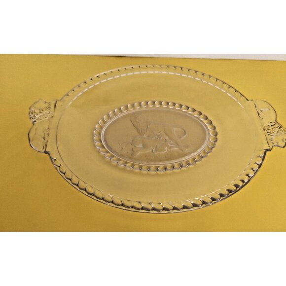 EAPG Gillinder Frosted Lion Oval Platter, handled. 13" x 9"