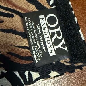 EARRINGS & SCARF CLIP & NECK SCARF, FOR PIERCED EARS TIGER PATTERN BROWN/BLACK, SCARF MADE IN CANADA, NEVER USED, NO DAMAGE