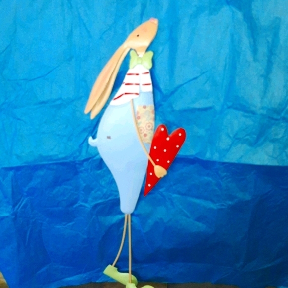Adorable bunny is Easter ready! 16.5" tall metal bunny is dressed up and ready to come home. Base is 4"×2".