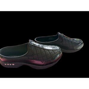 EASY SPIRIT TRAVELTIME BLACK LEATHER MULES SLIP ONS COMFORT WOMENS SZ 7