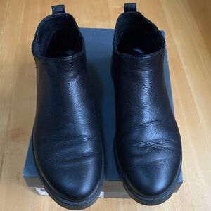 Gently used. Classic Chelsea with leather covered elastic side pieces. Leather with rubber soles. Women’s Size 41 or 10