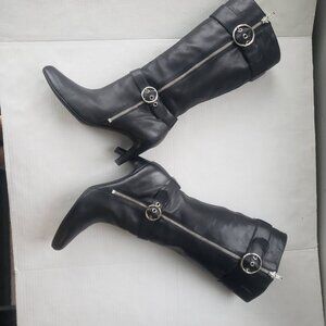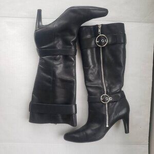 ECCO TALL BRISTOL HIGH HEEL MOTO STYLE BUCKLE BOOTS BLACK SIZE 40 or 9/9…