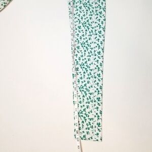 This workout set is not only super cute, but the fabric feels buttery soft. The top is a large and the bottoms are mediums. Both fit small, and I would recommend them for a person who typically wears a size small. I usually wear a small in most things and a bra size b34 (see pic 2 & 3 for fit on me). Someone with a bit larger bust would fit comfortably in the top too.