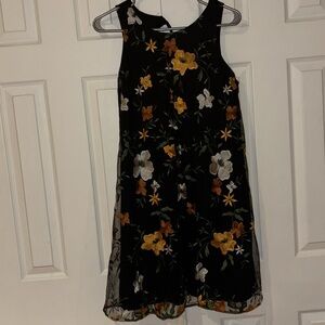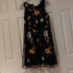 ECI New York Embroidered Floral Mesh Overlay Swing sleeveless party Dress