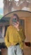 ECKHAUS LATTA Yellow Brown Stripe 100% Merino Wool Knit Woven Crochet Keyboard Sweater Jumper Pullover