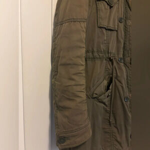 This jacket is the perfect blend of style and utility! There are slight discolorations (visible in photos), but when folded over to the buttons, they’re barely noticeable. The zipper and outer fabric have minor discoloration too, though it blends well with the green color.