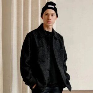 A minimalist utility jacket, this design features a shirt-style collar, adjustable button cuffs, clean line chest pockets and cotton lined side welt pockets.