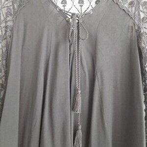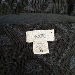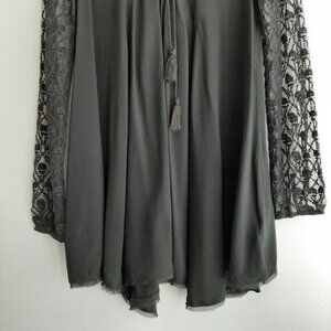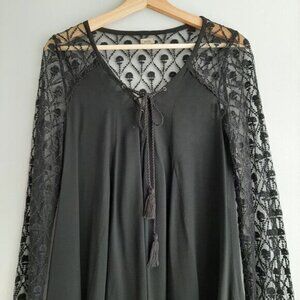 ECOTE Boho Floral Lace Tassel Tie Semi-Sheer Tunic Blouse Black Sz S