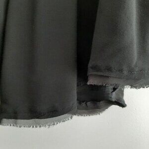 - Featuring asymmetric raw bottom hem and front tassel tie.