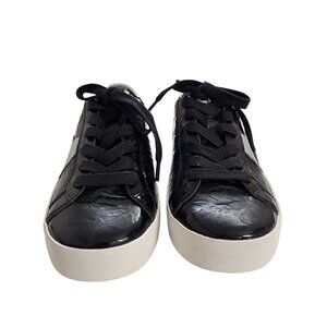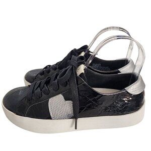 ED Ellen DeGeneres Eda-Gillen Lace-Up Leather Sneakers Black Silver 5.5