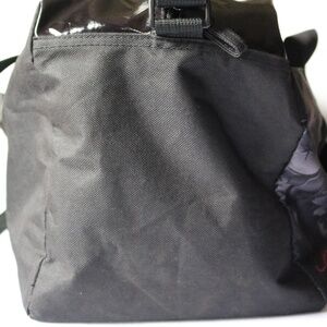 Fabulous Ed Hardy by Christian Audigier duffle/weekender bag. Black canvas with a shiny patent top and one side panel that features grey skulls/tiger motif. Red Ed Hardy signature on front left of bag. Zippered main compartment with smaller zippered area inside. Small outside pocket on front of bag. Bag is approx. 20" long and 10" high. Pre-owned but in excellent condition. Smoke free, pet friendly home!