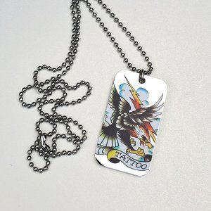 ED HARDY VINTAGE Style Necklace /Eagle Single dog tag/ Hard Rock Accessories