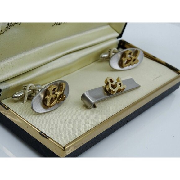 ED Name Vintage Cufflinks and Tie Clip Bar Set Swank NOS in Original Box 1950s