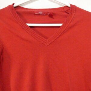 EDC By ESPRIT | medium | Elegant Red V-Neck Sweater | Stitched Logo On Sleeve