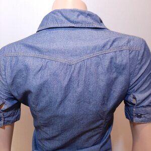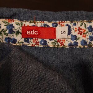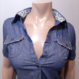 EDC Esprit Denim Shirt Button Down Short Sleeve Floral Western Y2K