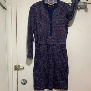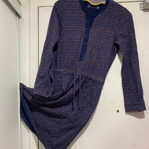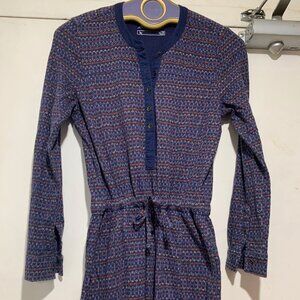 Eddie Bauer Midi Dress, Lightweight, Size XS, Multicolor Print, 100% Cotton, Side Pocket, Long Sleeve, Drawstring Waist, Closure Buttons, Good Condition, Summer Dress, Great Look, Great Fit.