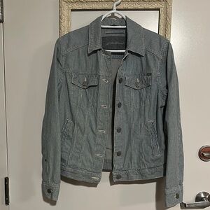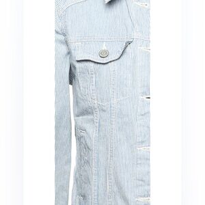 EDDIE BAUER | Light Blue Pin Stripped Lightweight Shirt Jean Jacket Button Up